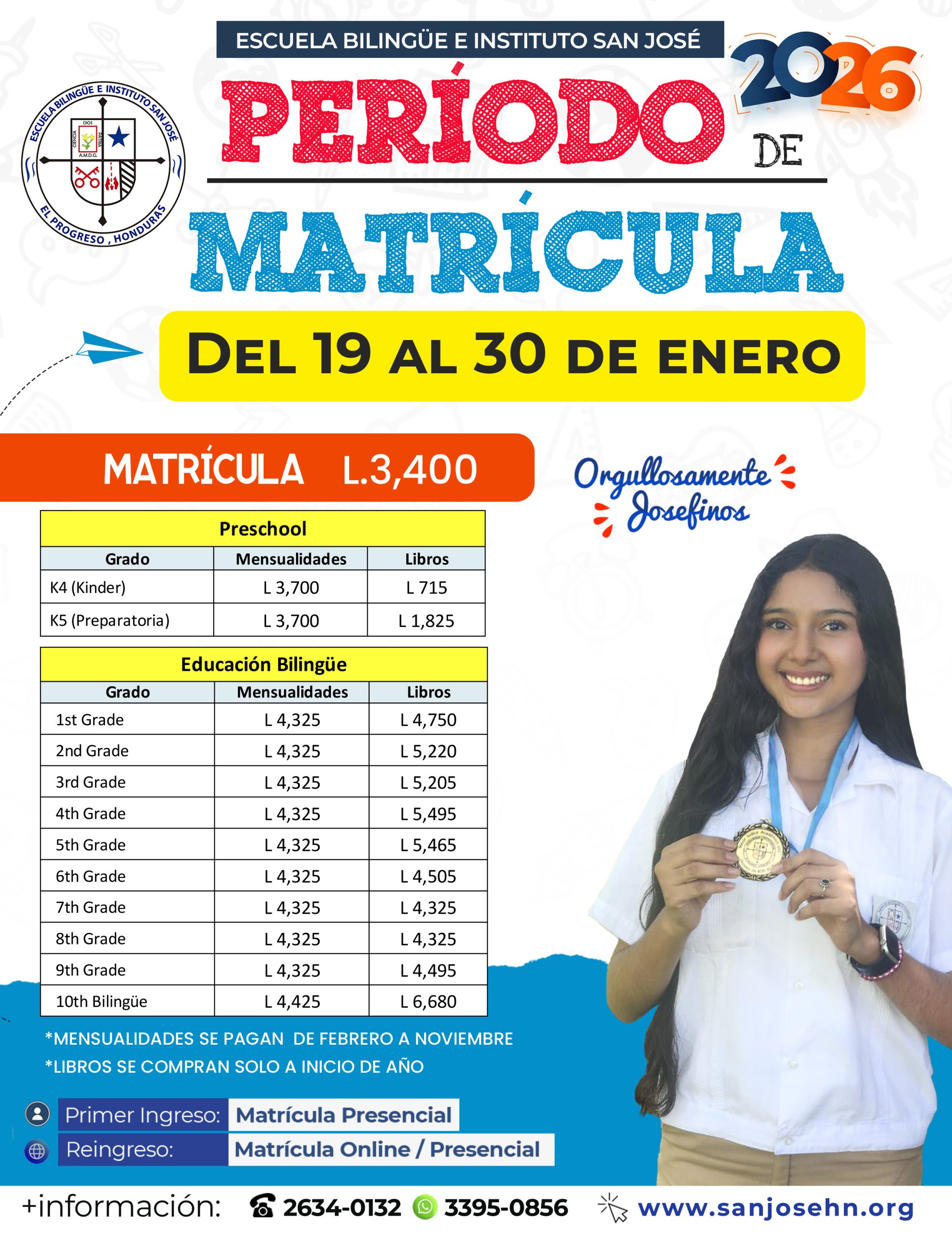 – Todos los nuevos ingresos de 1st grade hasta 10th grade deben realizar la prueba de admisión. (Fecha: 21 de enero 2026)